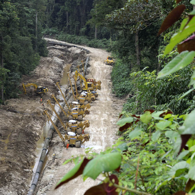 Construction was undertaken in a true greenfield environment, with no pre-existing road networks or supporting infrastructure across much of the route. The alignment crossed extremely rugged and varied terrain, including steep mountain slopes, swamps and wetlands, unstable soils, active fault zones and dense tropical rainforest.